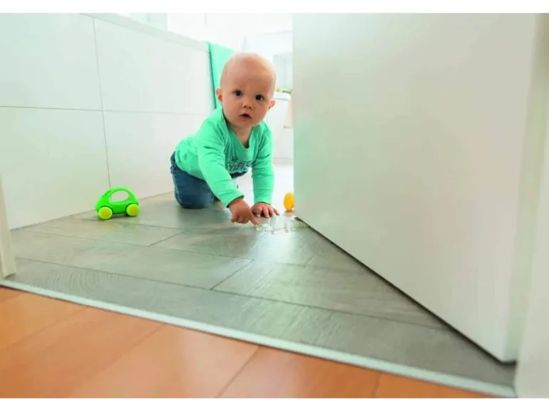 Türen auf mit Türstopper Luca im transparenten, unauffälligen Design. Dank des weichen Materials wird das Türblatt nicht beschädigt. Auch auf glatten Flächen sicher.