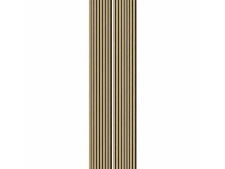 Die Akustikplatten lassen den Raum dank ihrer Streifenoptik tiefer und größer wirken. Kombinieren Sie verschiedene Formen und Proportionen von Akustikpaneelen, um einzigartige Muster und Designs an Wänden und Decken zu schaffen. Die Oberflächen in Folie unterstützen den skandinavischen Stil des Panels.