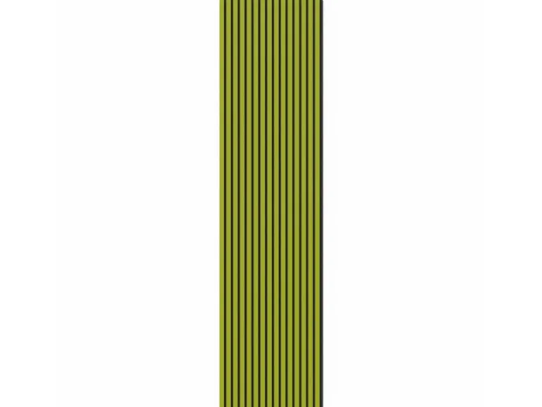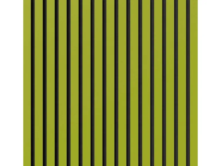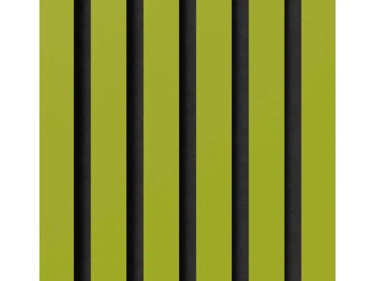 Die Akustikplatten lassen den Raum dank ihrer Streifenoptik tiefer und größer wirken. Kombinieren Sie verschiedene Formen und Proportionen von Akustikpaneelen, um einzigartige Muster und Designs an Wänden und Decken zu schaffen. Die Oberflächen in Linoleum unterstützen den skandinavischen Stil des Panels.