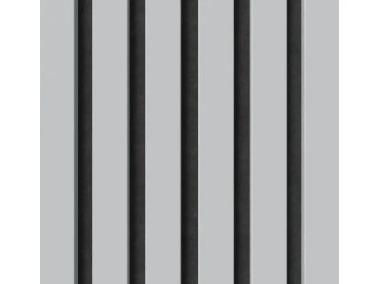 Die Akustikplatten lassen den Raum dank ihrer Streifenoptik tiefer und größer wirken. Kombinieren Sie verschiedene Formen und Proportionen von Akustikpaneelen, um einzigartige Muster und Designs an Wänden und Decken zu schaffen. Die Oberflächen in Folie unterstützen den skandinavischen Stil des Panels.
