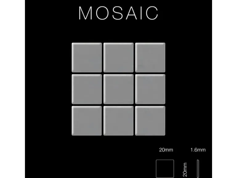 Mosaiksteingröße(mm) 20×20, Mattengröße(mm) 322x322x1,6, Mosaiksteine pro Matte(Stk) 225