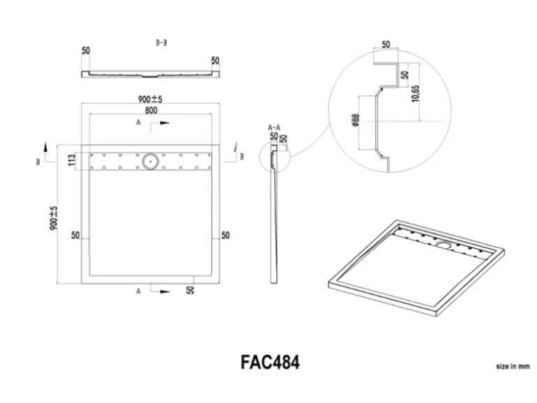 Ablauf in 90 mm nicht im Lieferumfang enthalten