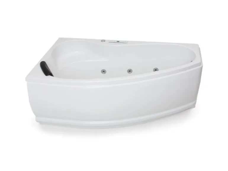 Der Whirlpool besteht aus hochwertigem reinem Sanitäracryl. Dieses Qualitätsmerkmal sorgt für eine optimale Wärmespeicherung sowie für ein angenehmes, warmes Hautgefühl beim Einsteigen in die Badewanne. Darüber hinaus wird im Laminierverfahren eine Glasfaserverstärkung auf die Außenseite der Eckwanne aufgetragen. Einzeln höhenverstellbare Füße schaffen einen Bodenausgleich von bis zu 10 cm. Das Fußgestell ist aus massivem rostfreiem Stahl und alle Eisenkleinteile sind von der deutschen Qualitätsmarke Würth.