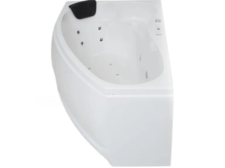 Die Whirlpoolwanne ist in Hochglanz-Weiß gehalten und hat die Maße (L x B x H): 160 x 90 x 62 cm