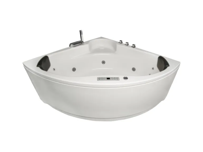 Dank der Leichtbauweise ist der Whirlpool Futuna perfekt für den Innenbereich geeignet. Seine Rückenschrägen und die gepolsterten Kopfstützen sorgen für eine komfortable Sitzposition. Die dreieckige Raumsparwanne ist mit 21 leistungsstarken Massagedüsen ausgestattet, welche sich in 5 Seitendüsen, 8 Bodendüsen und 8 Rückendüsen aufteilen.