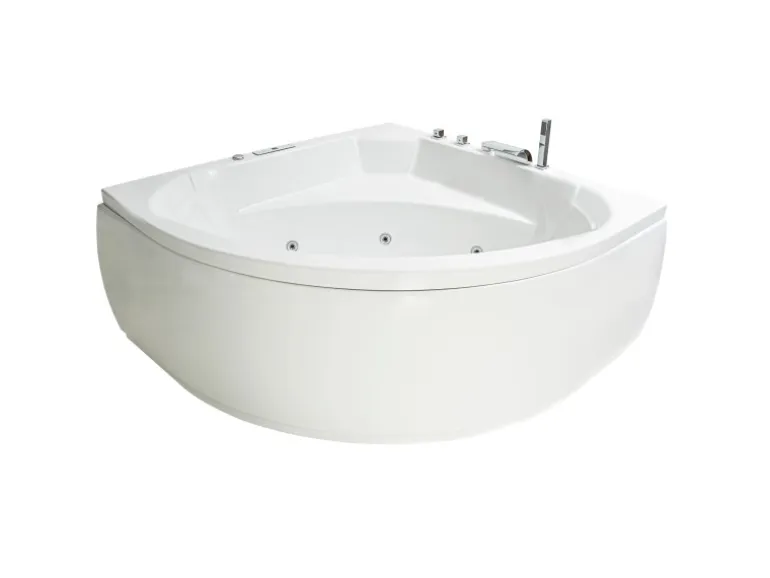 Die Whirlpoolwanne ist in Hochglanz-Weiß gehalten und hat die Maße (L x B x H): 155 x 155 x 72 cm