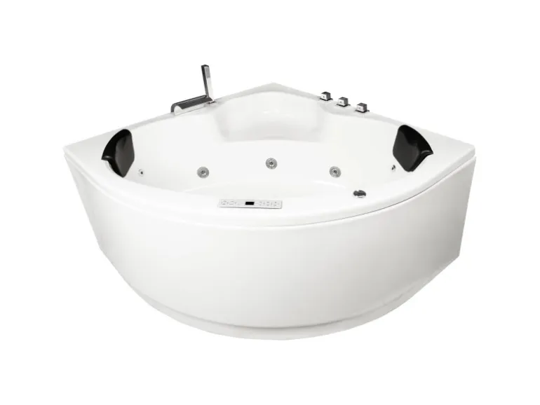 Die Whirlpoolwanne ist in Hochglanz-Weiß gehalten und hat die Maße (L x B x H): 130 x 130 x 60 cm