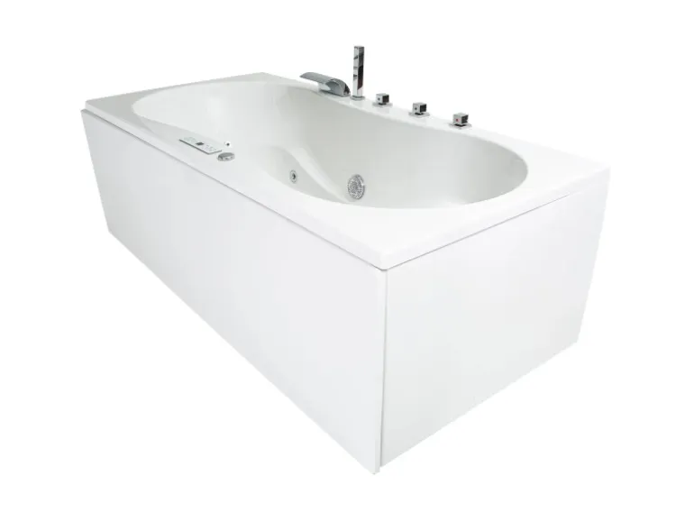 Die Whirlpoolwanne ist in Hochglanz-Weiß gehalten und hat die Maße (L x B x H): 190 x 90 x 62 cm