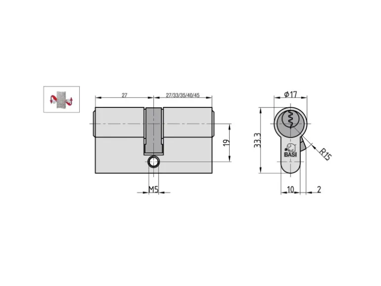 Basi – AS – Profil-Kurzzylinder – 27/40 mm – Verschiedenschließend – Not- und Gefahrenfunktion