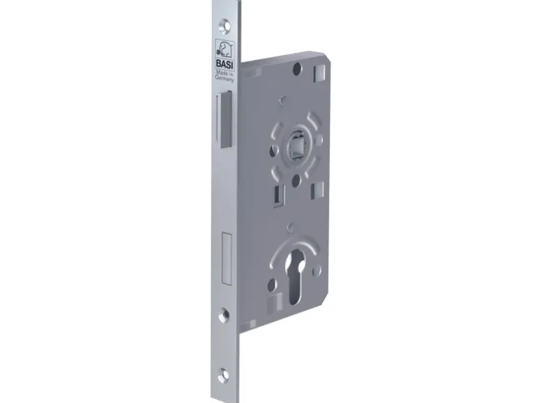 BASI Einsteckschloss – ES 924 – ideal für den Innenbereich verwendbar. Das Einsteckschloss mit Profilzylinder-Lochung eignet sich für den Einbau bei Eingangs- und Zimmertüren. Das Schloss besitzt einen eckigen Stulp mit 20 mm breite. Die Falle ist aus Metall – erhältlich für DIN rechts sowie DIN links Türen.