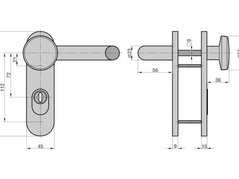 Türstärken 44-66 mm, Abstand 72 mm, Vierkantstift 9 mm