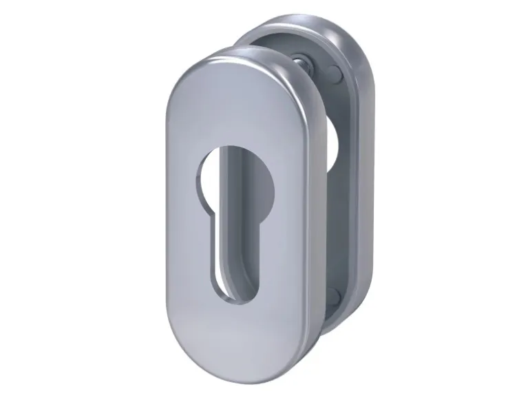 Rosettenpaar für Schmalrahmenbeschläge aus hochwertigen und modernen Edelstahl. Das ovale Rosettenpaar ist für Profilrahmentüren aus Kunststoff oder Metall mit einer Türstärke von 38-45 mm. Das Material besticht mit einem edlen und zeitlosen Design.