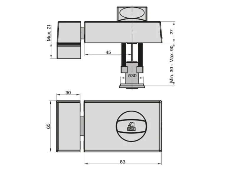 Basi – Türzusatzschloss – KS 500 – Dornmaß 45 mm – Silber – Käntige Ausführung – 2-Tourig – 1303-0205