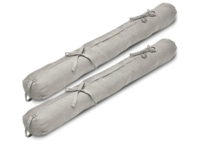 Der Bezug besteht zu 55% aus Baumwolle und zu 45% aus Polyester, die Füllung zu 100% aus Baumwolle. Mit einer Größe von 100×10 cm (ohne Schlaufe) passt das Viento Durchzustopper-Kissen von Beautissu vor breite Fenster und Türen.