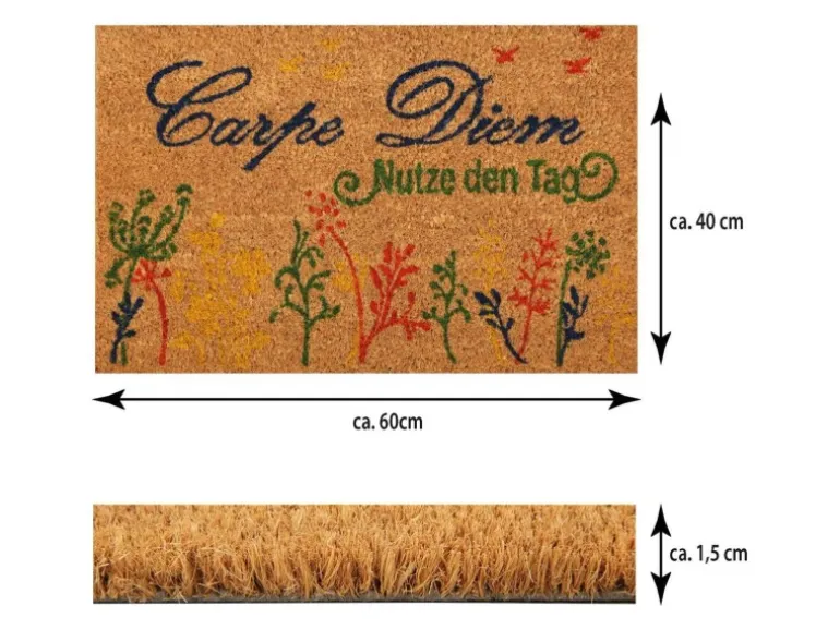 Die Fußmatten zeichnen sich durch ihre UV- und Wetterbeständigkeit aus. Das Design ist in einem schlichten grau gehalten und bietet sich aufgrund der originellen Designs perfekt an um Ihre Gäste Willkommen zu heißen. Abgesehen von dem schönen Design überzeugt die Gummimatte auch seitens der Nützlichkeit, denn die verarbeiteten Kokosfasern bieten eine extrem gute Aufnahme von Schmutz, Staub und Feuchtigkeit.