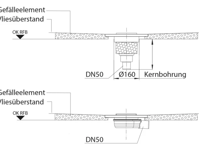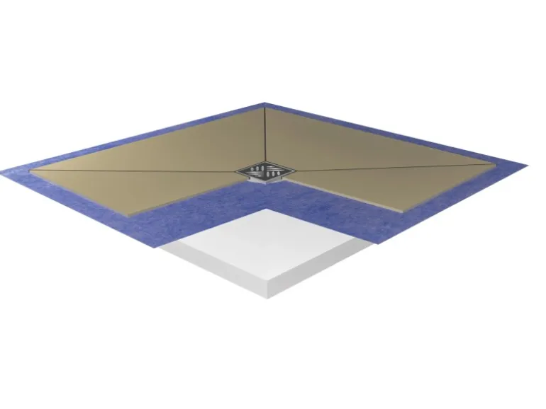 werkseitig aufgebrachte Vliesabdichtung nach DIN 18534-1, Wassereinwirkungsklasse W2-l mit umlaufendem Überstand zur Abdichtung zu den angrenzenden Bauteilen