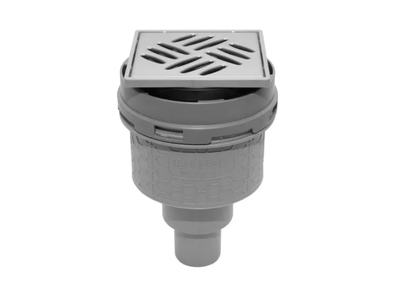 Abläufe mit Kunststoffaufsatzrahmen 130x130x8,5 mm, Rahmen 360 ° drehbar und inkl. Standardrost 120×120 mm aus Edelstahlt, Belastungsklasse K3