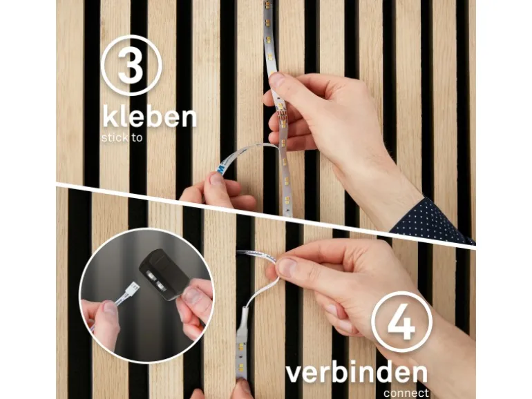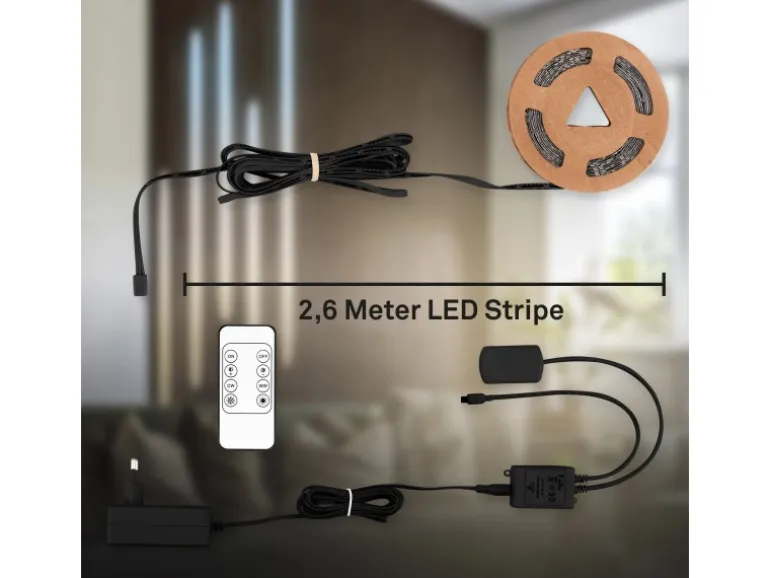 Einfache Installation: Inklusive 3m schwarzem Kabel, EIN/AUS Kabelschalter, Verteilerbox sowie 3M-Tape für problemlose Montage.
