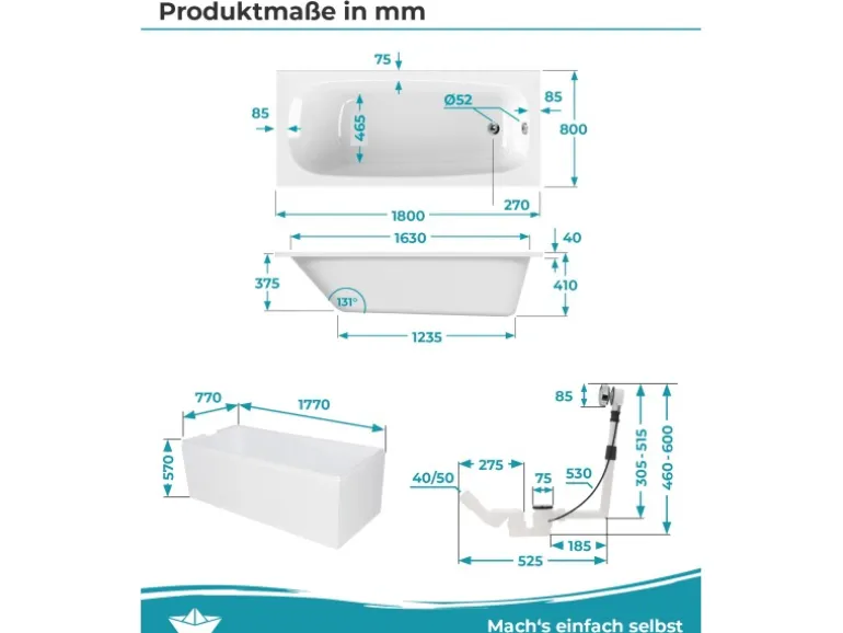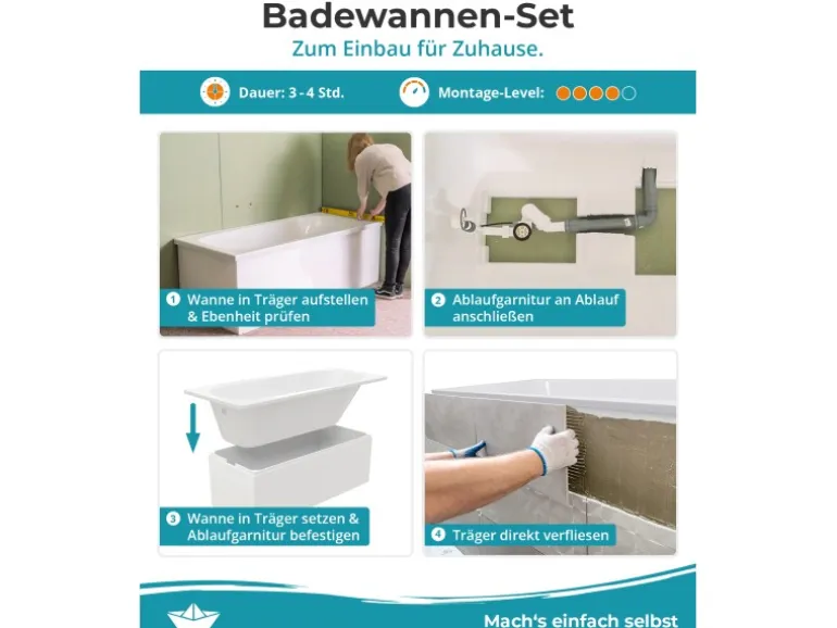 Wannenträger aus Styropor und Ablaufgarnitur in Chrom