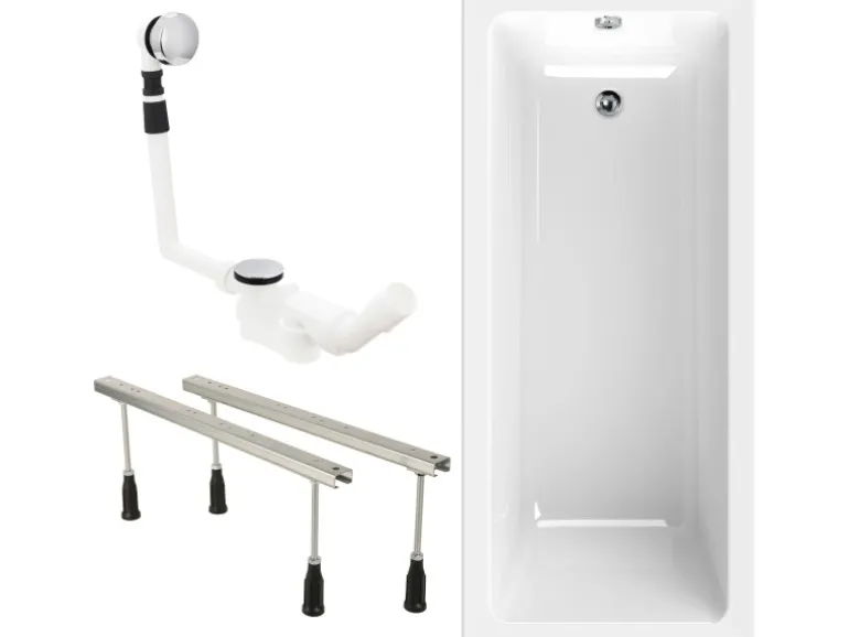 Höhenverstellbare Wannenfüße sowie Ablaufgarnitur in Chrom