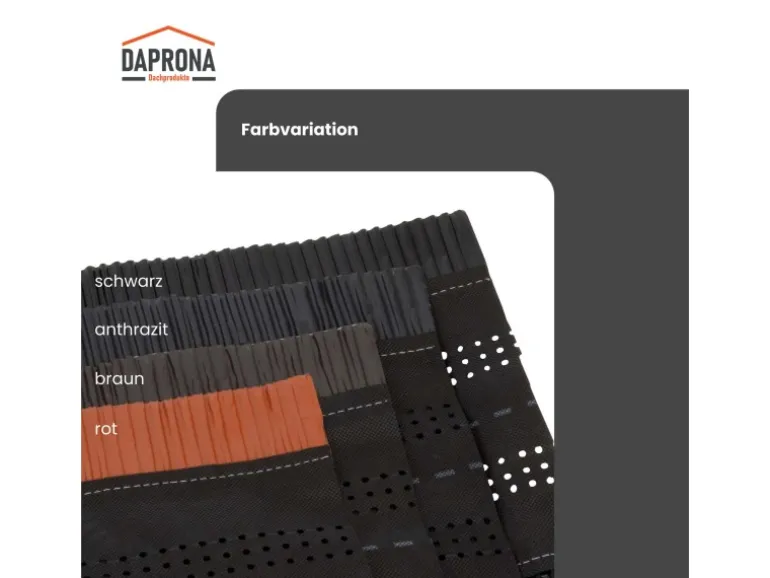 Mit der Daprona Firstrolle sorgst du für eine zuverlässige Abdichtung deines Dachfirstes und verhinderst, dass Schnee, Regen, Staub oder Insekten in dein Dachinneres gelangen. Gleichzeitig ermöglicht sie eine optimale Belüftung unterhalb der Dachdeckung, sodass du Feuchtigkeitsschäden vermeidest und von einer optimalen Luftzirkulation profitierst.