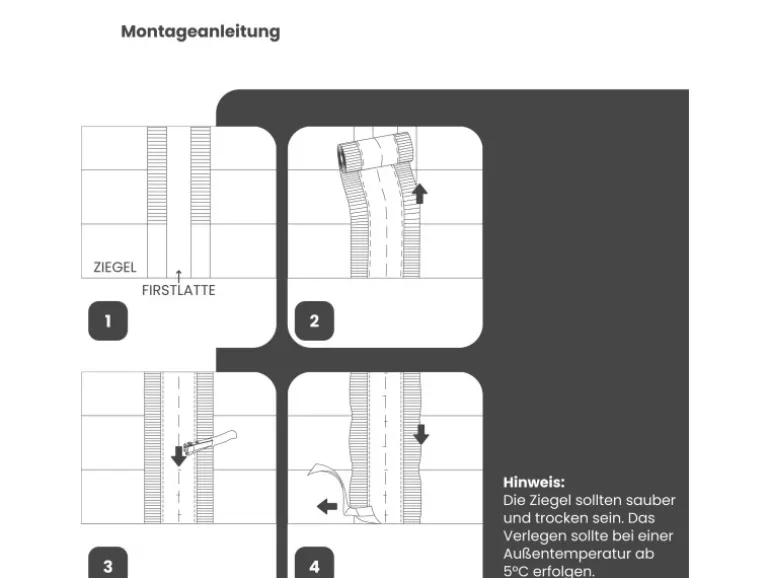 – Ermöglicht Abdichtung vom Dachfirst
