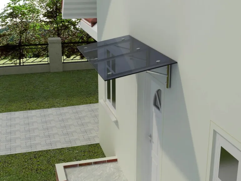 Unser Glasvordach bringt neuen Glanz an Ihr Haus. Durch die Kombination aus Funktionalität und modernes Design veredelt es jede Häuserfront. Das Verbundsicherheitsglas (VSG), besteht aus zwei Glasscheiben, die durch eine klare PVB-Folie fest miteinander verbunden sind. Die Glaspunkthalter, Zugstangen sowie Wandhalterungen bestehen aus hochwertigem Edelstahl (V2A). Durch die gehärtete Glasoberfläche entsteht keine Angriffsfläche für Moos, Ablagerungen und Kratzer. Das Glasvordach lässt sich zudem unter einem Neigungswinkel von 6 Grad montieren. Die Befestigungsausführung ist für hohe Kräfte optimal konstruiert. Unsere modernen Glasvordächer passen zu jedem Wandtyp, ganz egal ob Klinker, Putz oder Fachwerkhaus mit Dämmung. Durch die stabile Verarbeitung beträgt die Schneelast 120 kg pro m2.