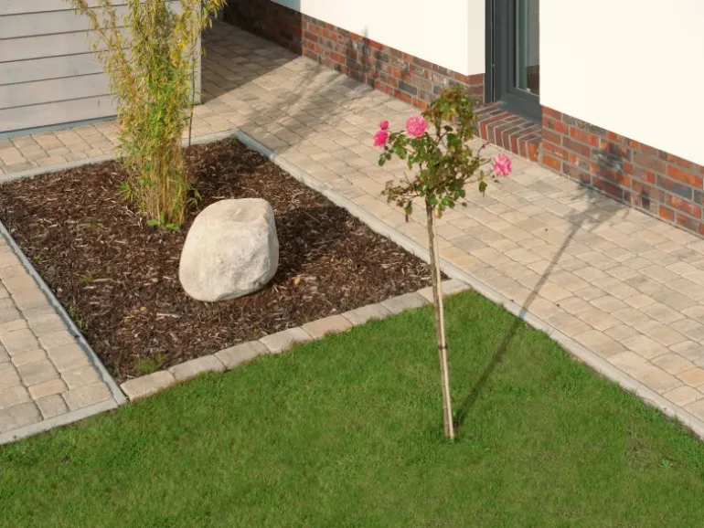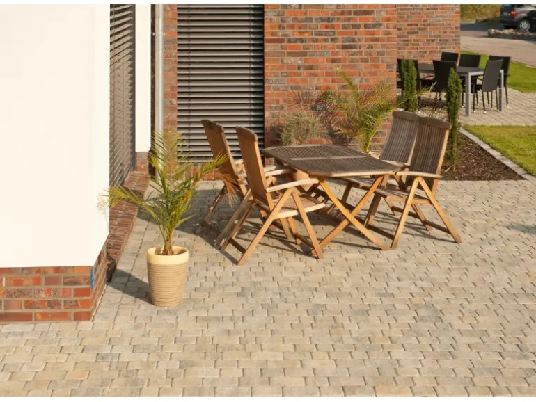 Pflastersteine aus Beton sind ein Belag für Terrassen und Wege und ergeben ein einheitliches Gesamtbild. Dank ihrer besonders hohen Abnutzungsbeständigkeit sind sie langlebig und bei Bedarf leicht austauschbar. Verschiedene Verlegemuster und Steinfarben können kombiniert und damit bestimmte Bereiche betont werden. Auch bei Nässe sind Pflastersteine aus Beton rutschfest und trittsicher.