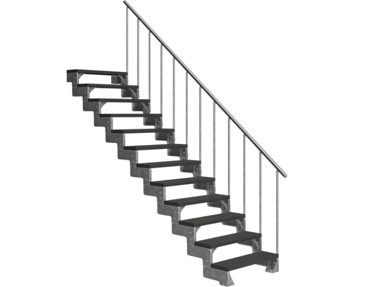 – 3 x Steiggeländerset für 6 Stufen (Aluminiumhandlauf und feuerverzinkte Geländerstäbe)