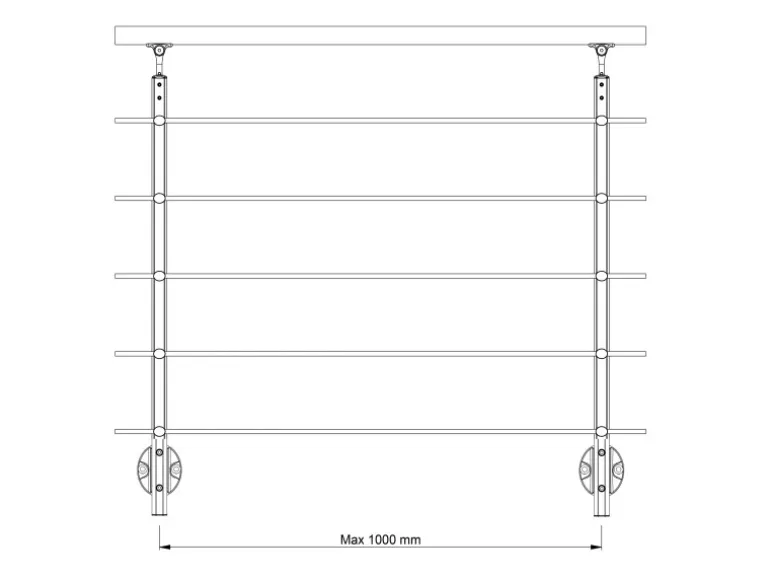 Die verschiedenen Bauteile aus eloxiertem Aluminium und Edelstahl sind robust, stabil und halten hohen Belastungen stand. Das Terrassengeländer ist dadurch witterungsbeständig, vor UV-Strahlungen geschützt und für den Außenbereich geeignet.