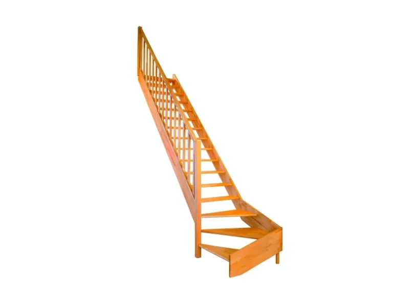 Unten links 1/4gewendelte Treppe aus Fichte
