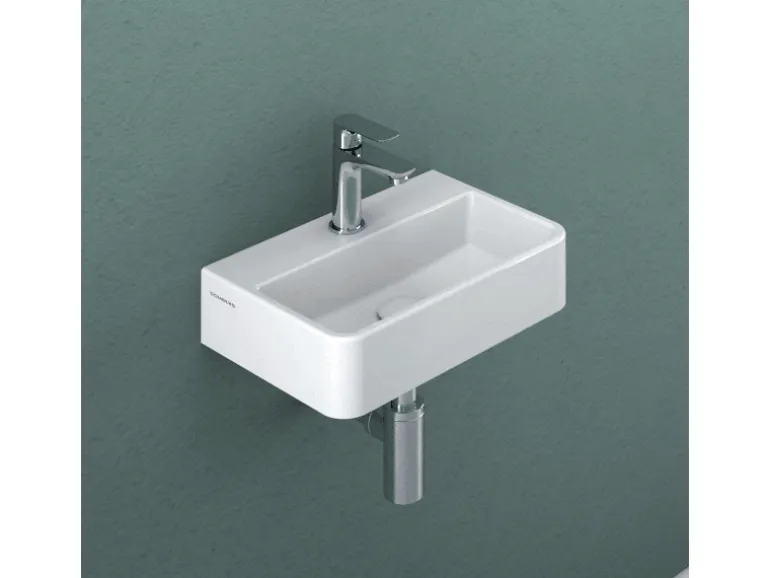Die Montage kann sowohl an der Wand als auch von oben, z. B. auf einer Platte, erfolgen. Das Waschbecken verfügt über einen extra großen Montagebereich (130 mm – 240 mm), der optimal für die Nutzung vorhandener Bohrlöcher geeignet ist. Für die Wandmontage ist ein SingleFix-Befestigungsset mit verstellbarem Höhenausgleich sowie ein Schallschutzband im Lieferumfang enthalten.