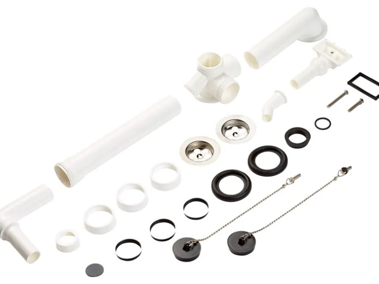 Verbindung von zwei Spülbeckenab- und Überläufen an den Siphon