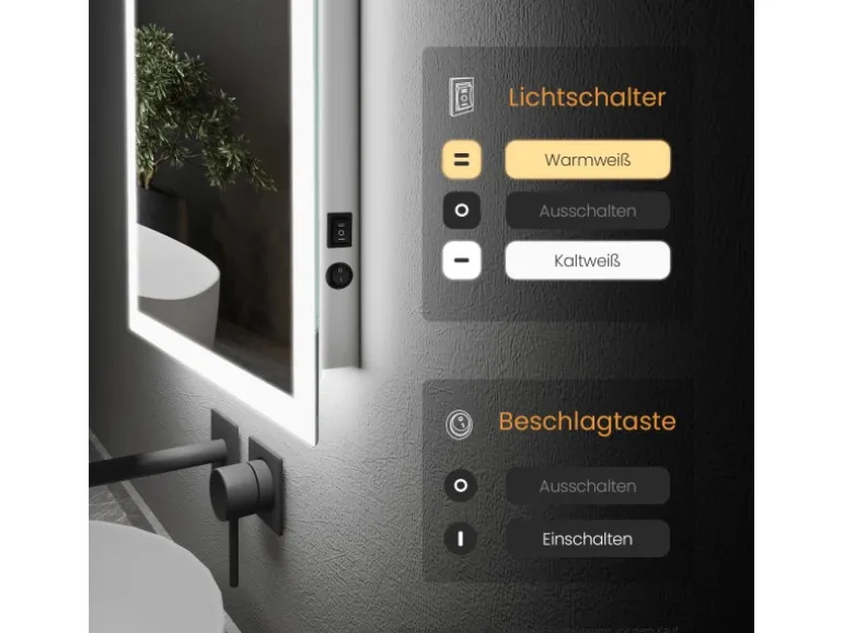 Mechanische Tasten: Unabhängige Tasten zur Steuerung von Beleuchtung und Anti-Beschlag.