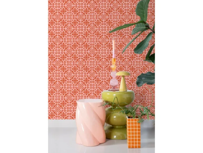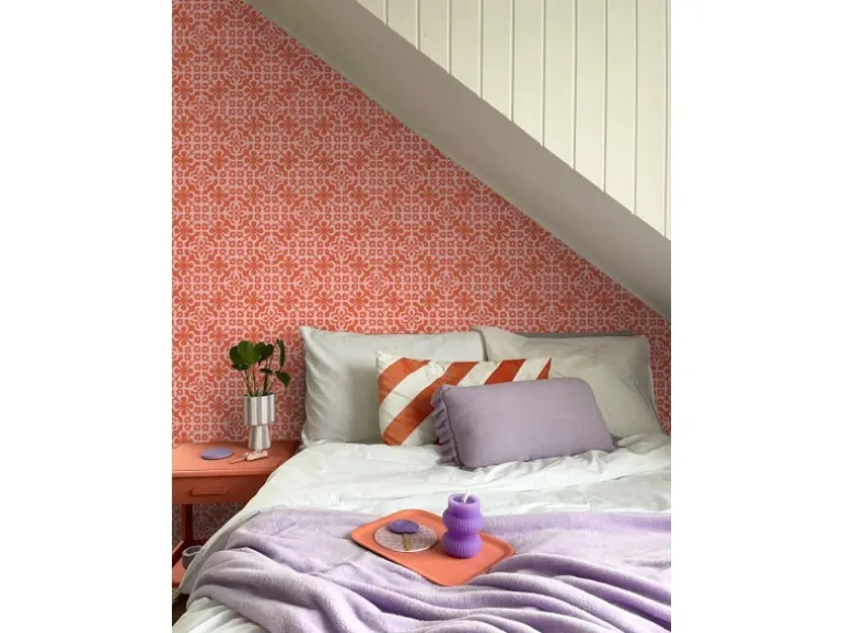 Diese trendige Tapete mit abgenutzten Fliesen in Korallenrot passt perfekt in den Bohemian Look. Dieser Boho Hippie-Stil, der schon seit ein paar Jahren nicht mehr aus der Mode weg zu denken ist, hat jetzt auch das Interieur erobert. Zum Kreieren des ultimativen Bohemian-Looks wird ein wenig Mut gefragt, aber wenn besondere Motive und Farben miteinander kombiniert werden, ist das Ergebnis häufig bezaubernd. So lassen zum Beispiel orientalische Teppiche, weiche Kissen, kuschelige Decken, Dip-dye Farbtechniken und geflochtene natürliche Materialien einen schönen und bunten Mix entstehen.Maße, Rapport und Musterversatz Die Maße dieser Tapete sind 50 x 900 cm (Breite x Länge). Der Rapport ist 25 (gerader Ansatz). Das heißt, dass das Motiv sich alle 25 cm wiederholt und das Muster der einzelnen Tapetenbahnen auf gleicher Höhe geklebt werden muss.Tapezieren Das Anbringen dieser Vliestapete ist einfach und unkompliziert: nachdem der Vlies-Kleister direkt auf die Wand aufgebracht wurde, kann die Tapete angesetzt und anschließend glattgestrichen werden. Eventuelle Überstande können mit einem Cuttermesser entfernt werden. Beim Tapezieren wird kein Tapeziertisch benötigt und die Tapete ist auch nach Jahren restlos trocken abziehbar. Für das beste Tapezierergebnis empfiehlt ESTAhome den professionellen Wallpro PRO-301 Tapetenkleister. Vorbereitungstipp: Verhindere Probleme mit der Haftung deines Tapeten, indem du vorher testest, ob deine Wandoberfläche stark saugend ist. Nimm dazu einen feuchten Schwamm und befeuchte einen kleinen Teil der Wand. Wenn der feuchte Bereich innerhalb weniger Sekunden verschwindet, ist die Wand sehr saugfähig. In diesem Fall empfehlen wir, ein Grundiermittel zu verwenden, um die Saugfähigkeit zu verringern. ESTAhome empfiehlt hierfür die WALL PRO-401 Tapetenprimer.Sofort startklar! Am einfachsten ist es, direkt auch der benötigte Tapetenkleister und ein Wallpro PRO-933 Tapezierset zu bestellen. Dieses Tapezierset enthält alle Tapezierwerkzeuge, die beim Tapezieren von Vliestapeten benötigt werden. Diese Artikel können über das Suchfenster auf der Amazon Seite schnell gefunden und bestellt werden. So wird das Tapezieren zum Kinderspiel!