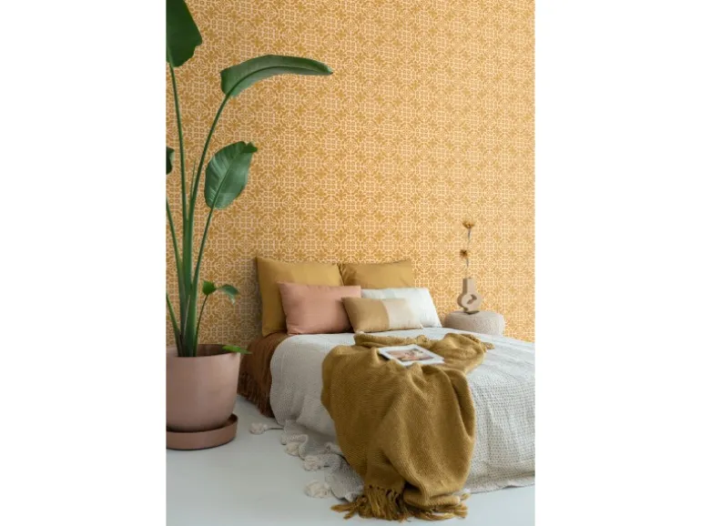 Diese trendige Tapete mit abgenutzten Fliesen in Ockergelb passt perfekt in den Bohemian Look. Dieser Boho Hippie-Stil, der schon seit ein paar Jahren nicht mehr aus der Mode weg zu denken ist, hat jetzt auch das Interieur erobert. Zum Kreieren des ultimativen Bohemian-Looks wird ein wenig Mut gefragt, aber wenn besondere Motive und Farben miteinander kombiniert werden, ist das Ergebnis häufig bezaubernd. So lassen zum Beispiel orientalische Teppiche, weiche Kissen, kuschelige Decken, Dip-dye Farbtechniken und geflochtene natürliche Materialien einen schönen und bunten Mix entstehen.Maße, Rapport und Musterversatz Die Maße dieser Tapete sind 50 x 900 cm (Breite x Länge). Der Rapport ist 25 (gerader Ansatz). Das heißt, dass das Motiv sich alle 25 cm wiederholt und das Muster der einzelnen Tapetenbahnen auf gleicher Höhe geklebt werden muss.Tapezieren Das Anbringen dieser Vliestapete ist einfach und unkompliziert: nachdem der Vlies-Kleister direkt auf die Wand aufgebracht wurde, kann die Tapete angesetzt und anschließend glattgestrichen werden. Eventuelle Überstande können mit einem Cuttermesser entfernt werden. Beim Tapezieren wird kein Tapeziertisch benötigt und die Tapete ist auch nach Jahren restlos trocken abziehbar. Für das beste Tapezierergebnis empfiehlt ESTAhome den professionellen Wallpro PRO-301 Tapetenkleister. Vorbereitungstipp: Verhindere Probleme mit der Haftung deines Tapeten, indem du vorher testest, ob deine Wandoberfläche stark saugend ist. Nimm dazu einen feuchten Schwamm und befeuchte einen kleinen Teil der Wand. Wenn der feuchte Bereich innerhalb weniger Sekunden verschwindet, ist die Wand sehr saugfähig. In diesem Fall empfehlen wir, ein Grundiermittel zu verwenden, um die Saugfähigkeit zu verringern. ESTAhome empfiehlt hierfür die WALL PRO-401 Tapetenprimer.Sofort startklar! Am einfachsten ist es, direkt auch der benötigte Tapetenkleister und ein Wallpro PRO-933 Tapezierset zu bestellen. Dieses Tapezierset enthält alle Tapezierwerkzeuge, die beim Tapezieren von Vliestapeten benötigt werden. Diese Artikel können über das Suchfenster auf der Amazon Seite schnell gefunden und bestellt werden. So wird das Tapezieren zum Kinderspiel!