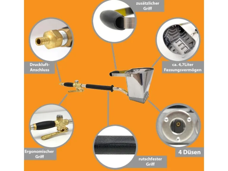 Druckluft Putzmaschine mit 4 Düsen. Damit hast Du den Putz im Handumdrehen an der Wand.