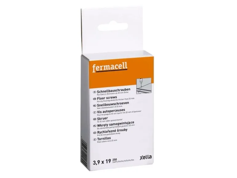 Damit Ihre Estrich-Elemente optimal befestig werden, sind die korrosionsgeschützten Fermacell Schnellbauschrauben die perfekte Wahl. Dank ihres speziellen Gewindes lassen sich die Schrauben vor allem schnell und sauber eindrehen und können optimal im Falzbereich (nach dem Kleberauftrag) versenkt werden. Eine Packung enthält 250 Stück Fermacell Schnellbauschrauben mit den Maßen 3,9 mm x 19 mm.