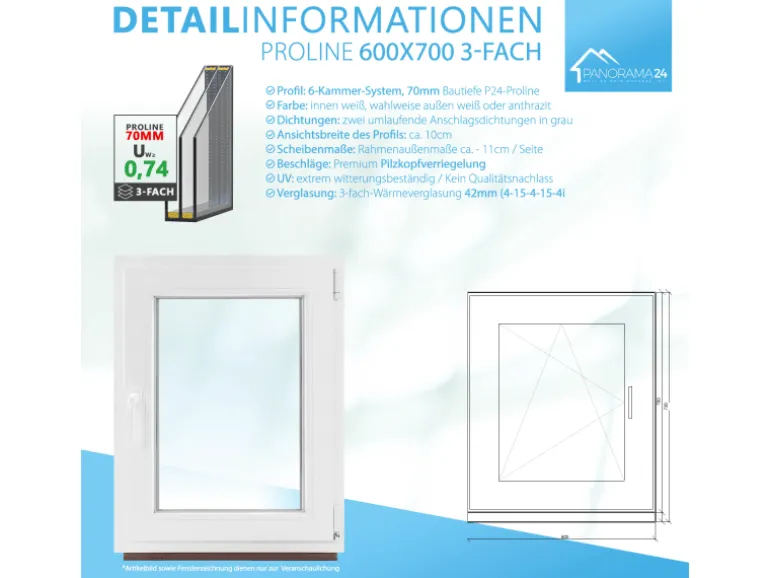 Framelux Kunststofffenster Proline Anthrazit 3-Fach Verglasung 600 x 700 mm Rechtsanschlag