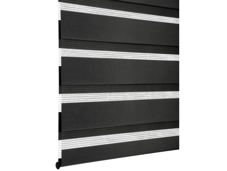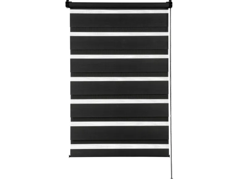 Eine Klebemontage ist ebenfalls möglich. Der Stoff ist abwechselnd in transparenten und blickdichten Streifen gewebt und verläuft doppelt gegeneinander. Sicht-und Lichteinfall können so sehr genau dosiert werden. Das Easyfix Doppelrollo wird mittels einer Kette auf- und abgerollt. Die Kette kann rechts oder links montiert werden.