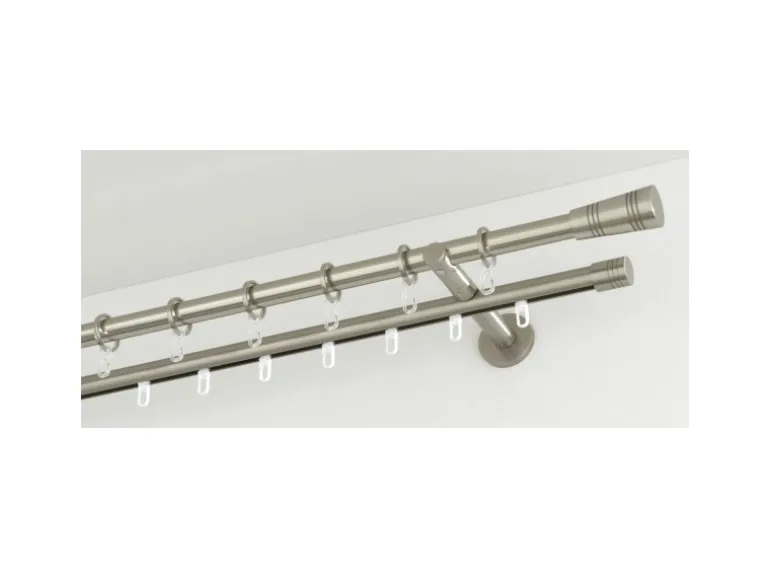 Die Gardinia Stilgarnituren bieten eine große Auswahl kombinierbarer Einzelteile. Für die Montage einer kompletten Stilgarnitur benötigen Sie z. B. 1 Gardinenstange, 2 dekorative Endstücke, 2 Wand- oder Deckenträger sowie Gardinenringe. Für individuelle Ansprüche werden mit Stangen- oder Eckverbindern, Doppelträgern und zusätzlichen Gardinenstangen ideenreiche Lösungen bereitgestellt.