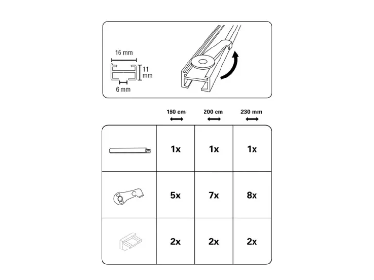 Inkl. Endkappen und Deckenträger aus Kunststoff
