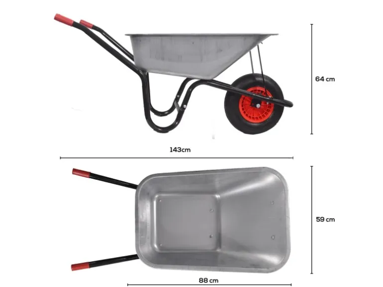Maximale Belastbarkeit: Ganz gleich ob Sie Sand, Kies oder Baumaterial transportieren müssen – diese Schubkarre steht jeder Herausforderung gewachsen. Mit beeindruckender Tragfähigkeit bewältigt sie mühelos schwere Lasten und bleibt dabei leicht manövrierbar.