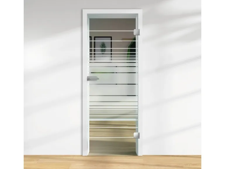 Alle Glastüren werden in Deutschland produziert und veredelt. Wählen Sie zwischen ESG und VSG, mit Dekor, Motiv oder ohne, Klarglas, Strukturglas, farbiges Glas, mattiertes oder blickdichtes Glas. Neben Floatglas setzen wir auch ein besonders klares und helles Weißglas ein. Mit Weißglas kommen durchscheinende Farben neutraler zur Wirkung. Dieses wird besonders bei Weißtönen und an den geschliffenen Glaskanten deutlich.