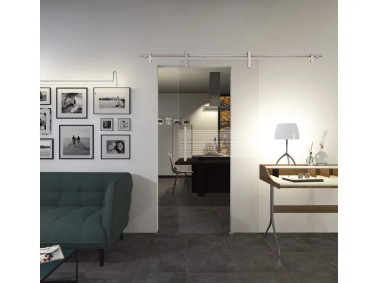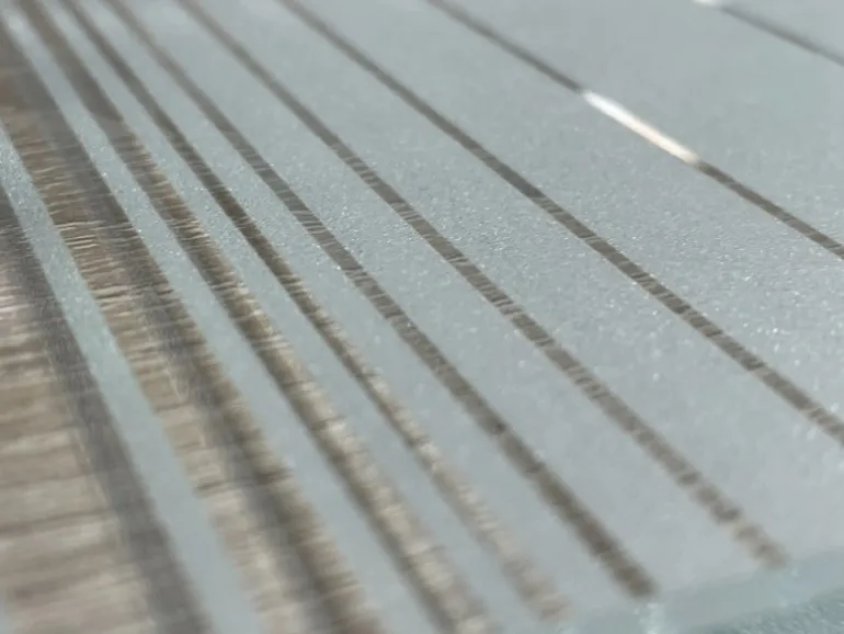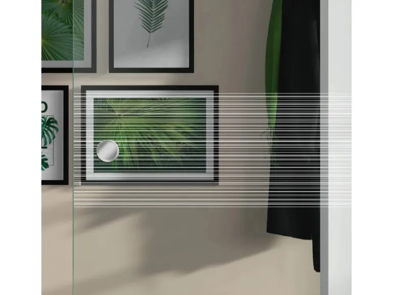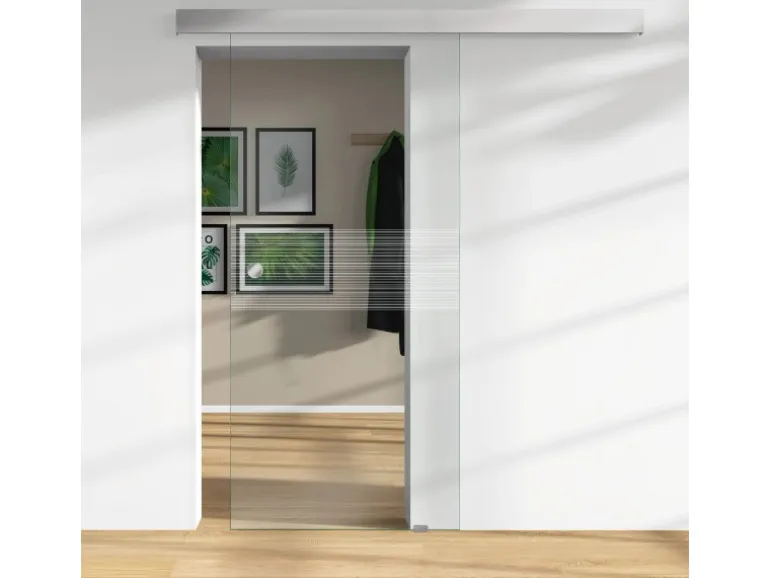 Die Glasschiebetüren sind in vielen Glassorten und Abmessungen von bis zu 1200 x 2600 mm möglich. Auf Wunsch erhalten Sie zahlreiche Laser-oder Siebdruckdekore.