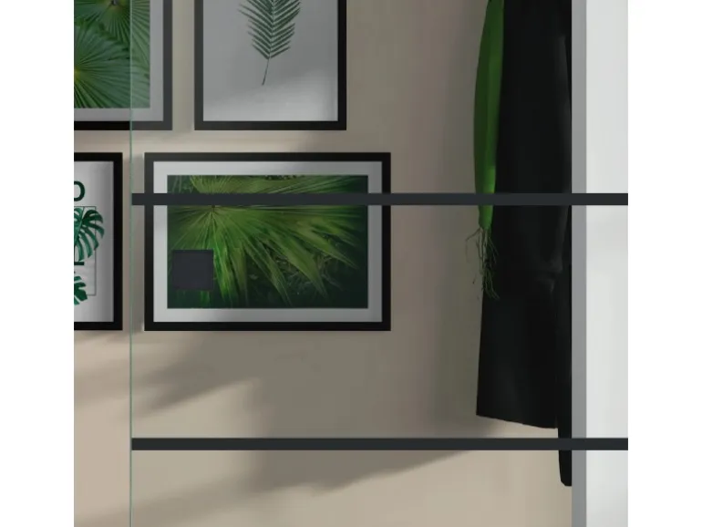 Die Glasschiebetüren sind in vielen Glassorten und Abmessungen von 1.200 mm x 2.600 mm möglich. Auf Wunsch erhalten Sie zahlreiche Laser-oder Siebdruckdekore.