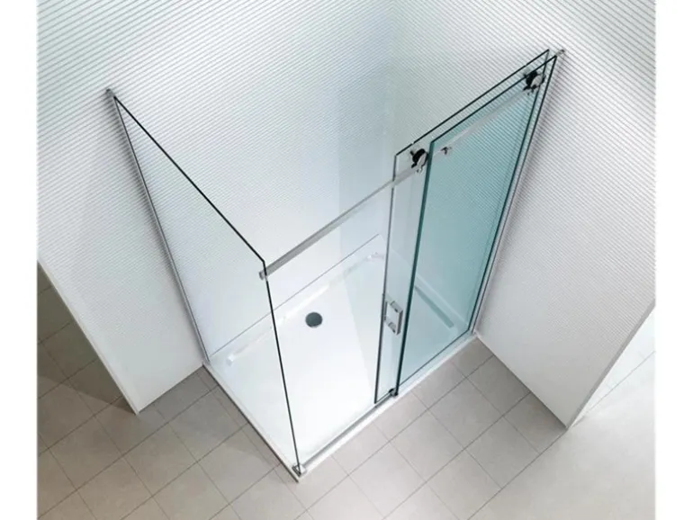 Platzsparende Eckdusche mit Schiebetür-System