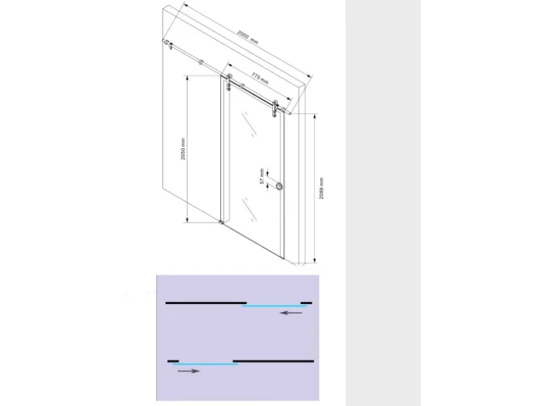 Die Montage des Schiebetürsystems kann an der Wand oder an der Decke erfolgen.