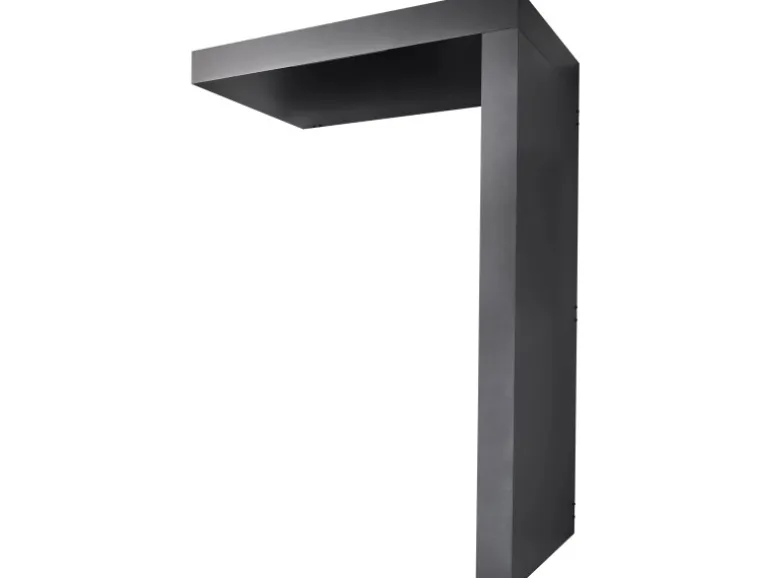 Das Vordach besteht aus pulverbeschichtetem Aluminium in Anthrazit (Feinstruktur) und einer Füllung mit EPS-Dämmplatten, die störende Geräusche von Niederschlägen verhindert. Die BS Plus Modelle verfügen über ein integriertes Entwässerungssystem, bei dem das Wasser entweder durch ein Fallrohr im Seitenteil oder durch einen Wasserspeier gezielt abgeführt wird.