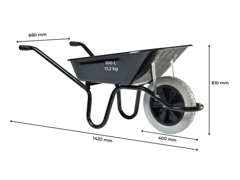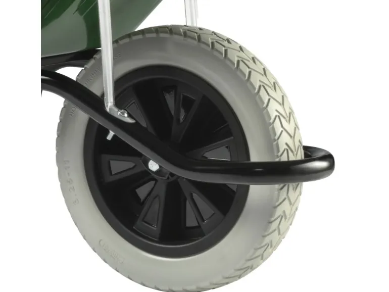 Diese Schubkarre verfügt außerdem über ein pannensicheres PU-Rad. Somit stellt sie ein optimales, bewährtes Transportgerät für Materialien von anspruchsvollen Heimwerkern dar.